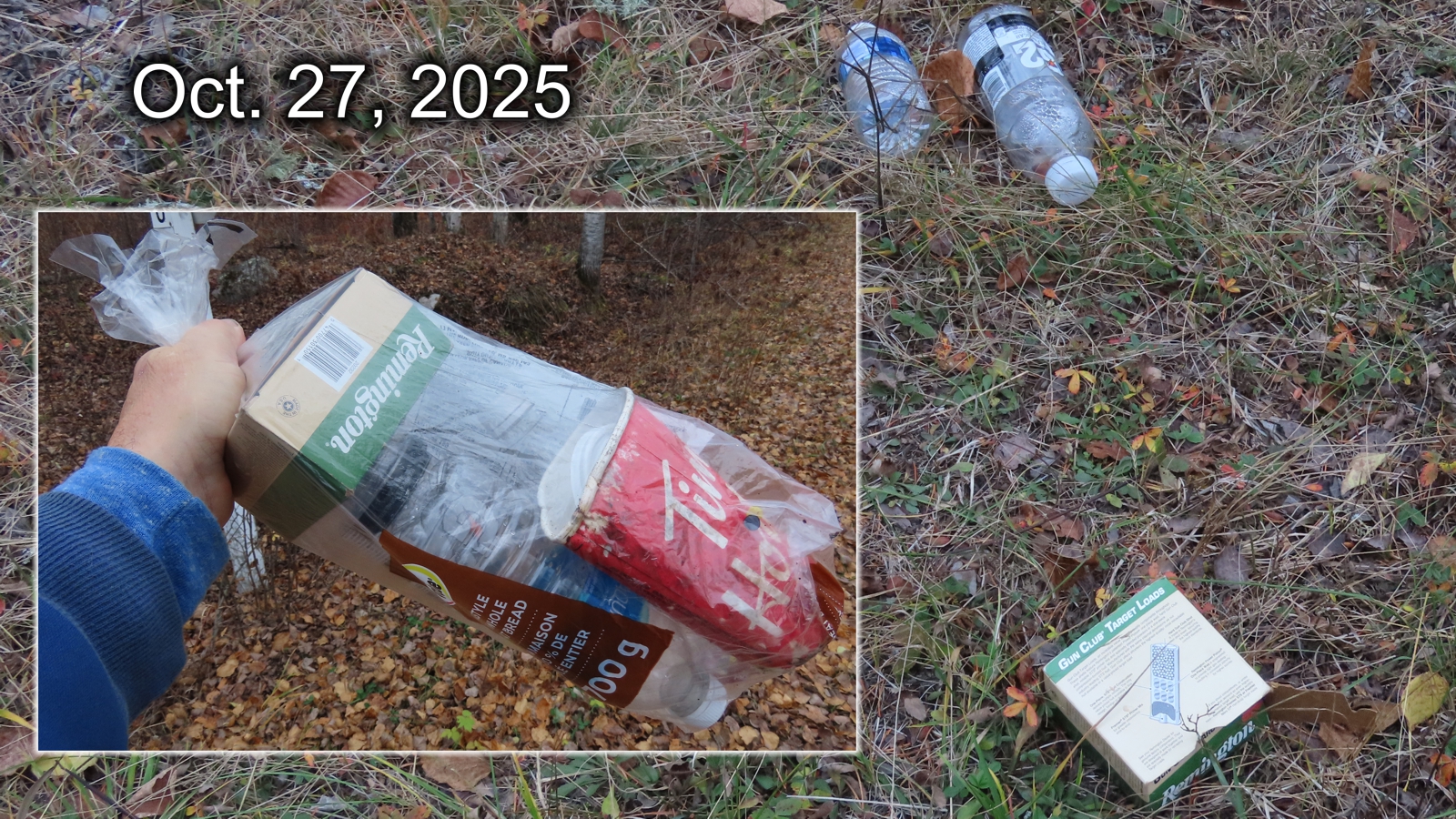 Hunter's Mess: Once again I found myself picking up garbage left by hunters, this time on the U of M road by the snowmobile trail. C'mon guys it's bad enough you're hunting right next to a cottage development, at least pick up your trash.